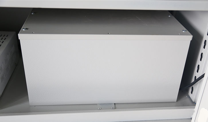 恒溫除濕功能是智能安全工具柜的基本功能,下圖是金能配備的新一代除濕機,其好壞的評定是是否在規定時間內讓柜體內達到指定的溫濕度,運行是否穩定無噪音。
