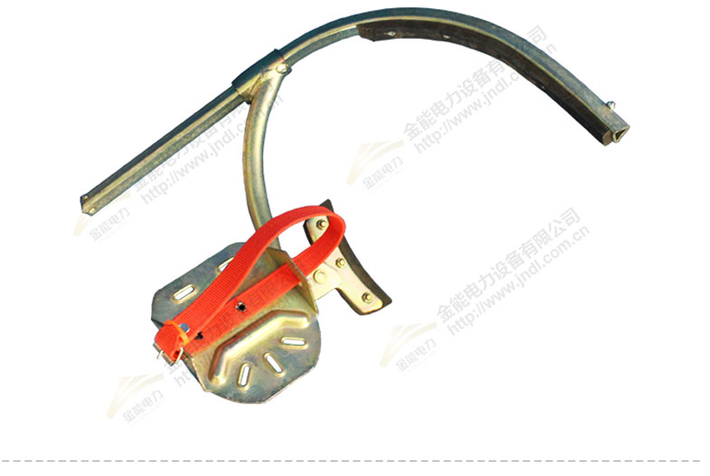 腳扣是攀登水泥電桿的主要工具之一,用腳扣的半圓環和根部裝有橡膠套或橡膠墊來防滑。