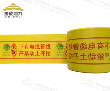 一般地埋警示帶的字樣有:下有管道,嚴禁開挖;下有電纜,嚴禁開挖;下有自來水管道,嚴禁開挖、下有電纜管道,嚴禁開挖,下有自來水管道,嚴禁開挖等,并且根據的使用要求進行定制。PE地埋警示帶的常見規格寬度分別為:10cm,15cm,20cm,30cm,40cm,50cm,100cm;PE可探測地埋境地帶常見規格為:15cm材質為寬金屬絲,20cm材質為寬金屬絲,20cm材質為寬鋁箔。以上產品厚度均為12絲。